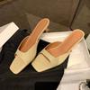 Cream French Square Head Half Slippers Women's Outwear 2025 Spring Muller Stilettos