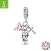 100 % 925 Stříbrné Růžové srdce Anděl květiny Tisk tlapky Hudební přívěsek Modré oči Korálky Hodí se přívěsky Náramek Šperky