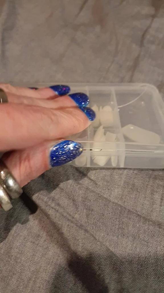 ⭐⭐⭐⭐⭐ Schöne dünne Full-Covers! Die Aufbewahrungsbox hat zwar einen kleinen Riss, aber die Nägel haben es überstanden. Meine "Milky Way" Nägel links habe ich mit diesem Produkt bestückt. Man kann die Nägel wunderbar vor dem Kleben in Form feilen (Nagelbett anpassen und die Form nach Geschmack kürzen).