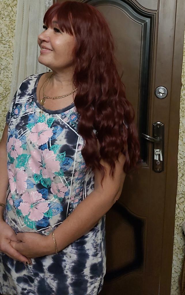 MERISIHAIR Dlouhá vlnitá paruka s ofinou Vínově červené paruky pro ženy Vínová paruka Vlnitá paruka ze syntetického vlákna