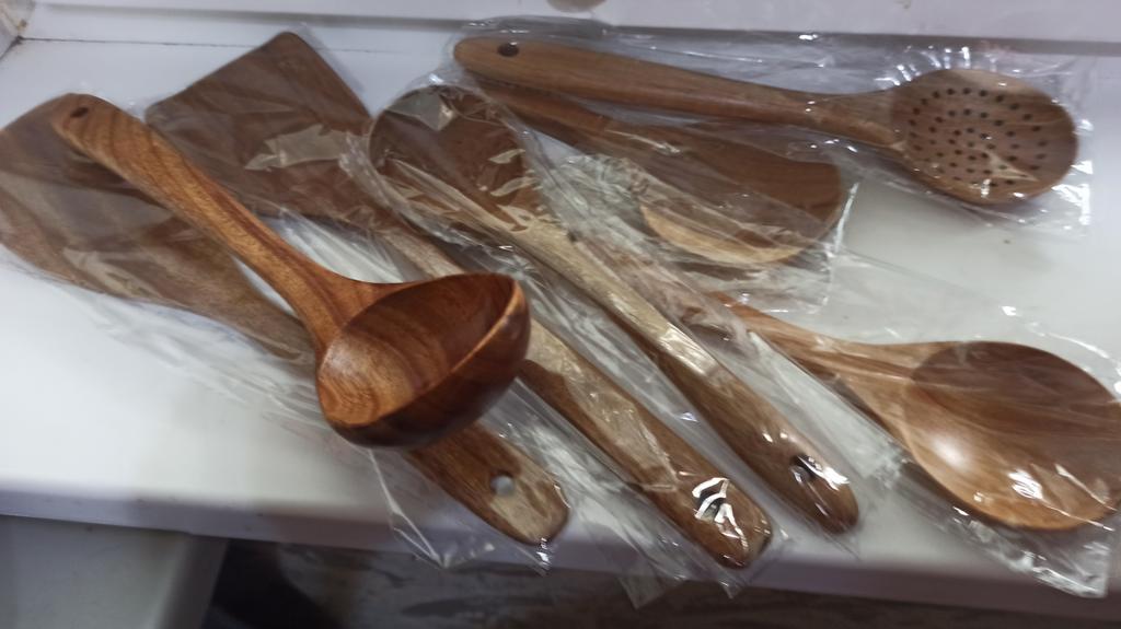 7ks/sada Teakové nádobí z přírodního dřeva lžíce cedník lžíce speciální nano polévka skimmer lžíce na vaření dřevěná sada kuchyňského nářadí