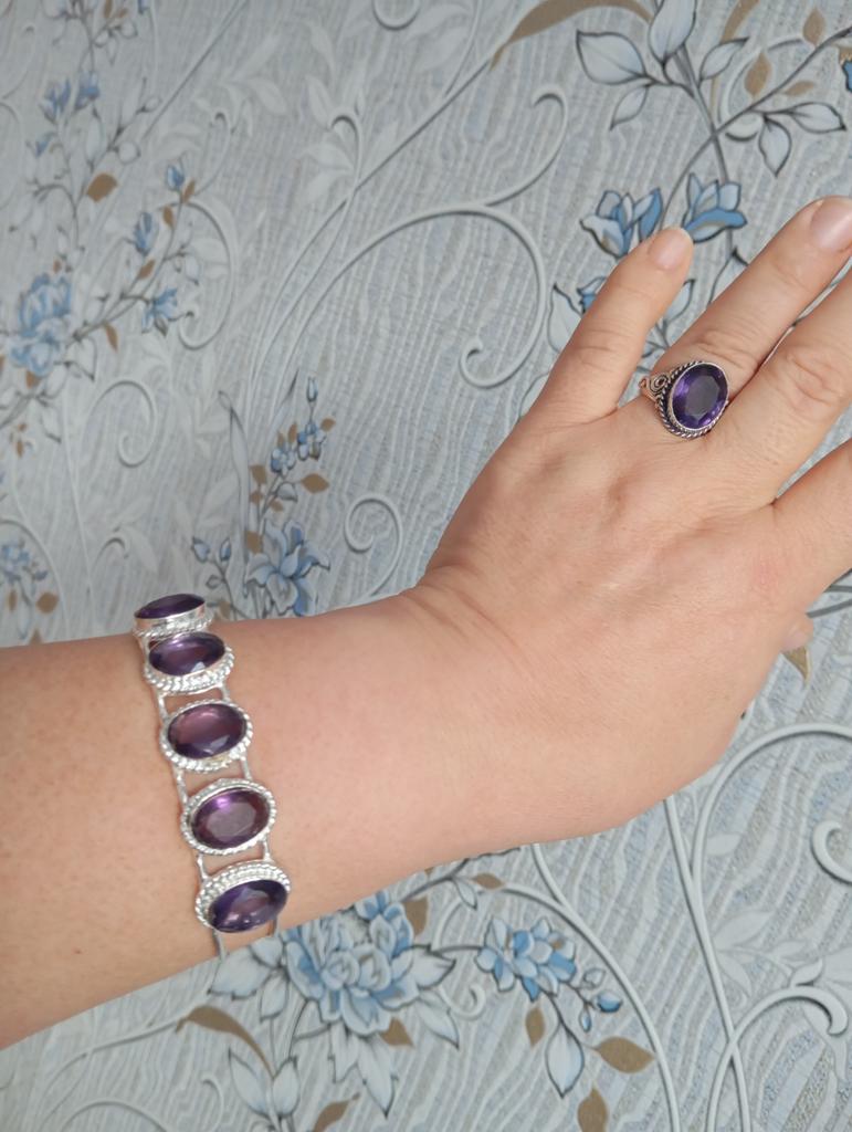 Ametyst Gemstone 925 Sterling Silver Ručně vyrobený manžetový náramek nastavitelný pro ženy