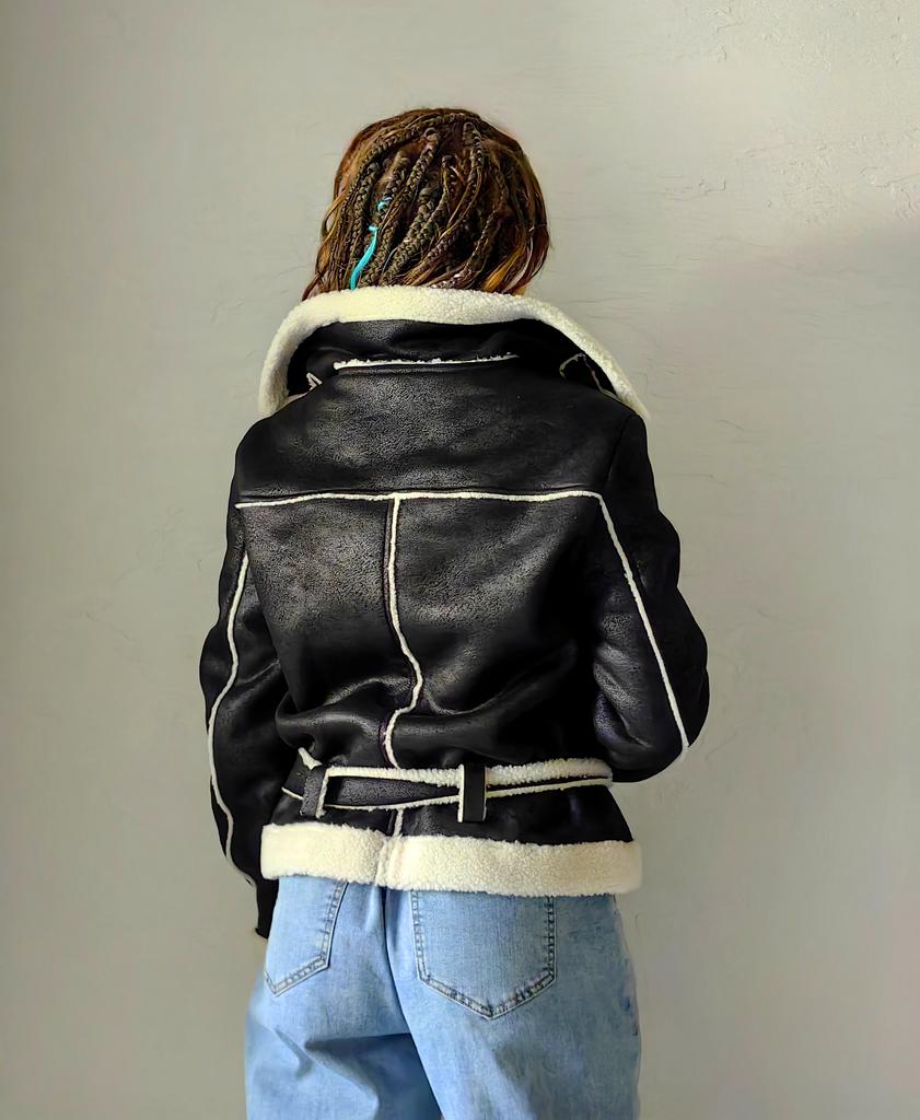 Tato teplá zimní moto bunda z imitace kůže zaujme mnoha vzrušujícími detaily.