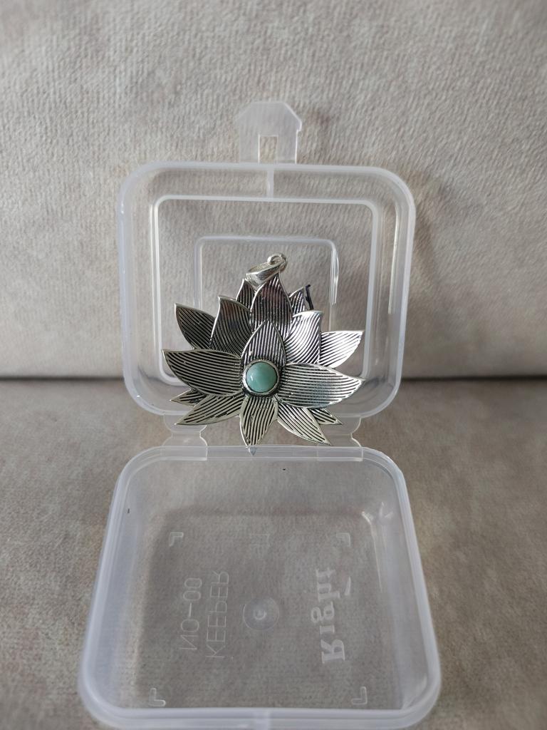 Larimar Moonstone Lotosový přívěsek Solid 925 Sterling Silver Jemné šperky Dámský přívěsek