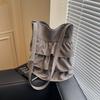 Niche Design Draw with Pleated Bucket Bag Fashion Literary Simple Single Shoulder Crossbody Bag Women's Shopping Bag