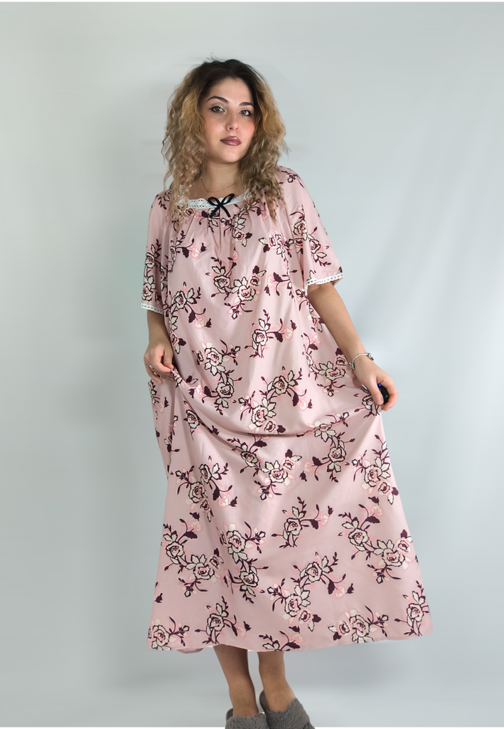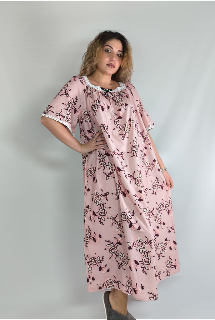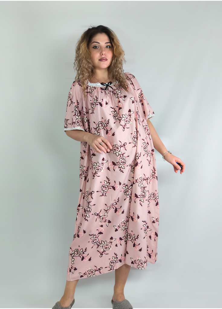 Letní dámská noční košile Velké domácí oblečení Pyžamo Krajka Splicing Krátký rukáv Noční košile s potiskem