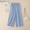 ZANZEA Dámské kalhoty s květinovým potiskem Ležérní elastický pas se širokými nohavicemi