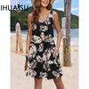 IHUASU Women's Colourful Butterfly 3D Printed Sexy Comfortable Beach Cover Dresses
