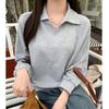 Casual Oversized Sweatshirts Women Korean Fashion Kpop Polo Collar Grey Solid Pullovers 2024 Autumn Streetwear