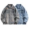 American Retro Style Men Jeans Coat Spring/Fall Streetwear Loose Ripped Distressed Light Blue Denim Jacket with Double Pockets Casual Men Clothing