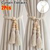 2 balení ručně tkaný masivní dřevěný magnetický popruh na záclony Boho závěsy na zadní straně kravaty Dekorace na lano pro tenké/silné okenní závěsy
