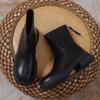 European and American Style Women's Simple Fashion Black Chunky Heel Round Toe Boots Ladies' Zipper Back PU Leather Short Boots
