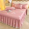 Pink Flowers Lace Bed Skirt Set Summer Ice Silk Smooth Comfortable Bedspread with Pillowcases Luxury Queen King Size Bedding Set