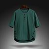 Velké pánské stojáček v čínském stylu Tričko z bavlny a lnu Volné pánské letní tričko s polovičním rukávem