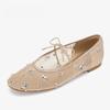 Krazing Pot crystal beading Fashion Spring Size 42 41 Low Heels Women round Toe Shoes Ballet Dance Shallow Flats