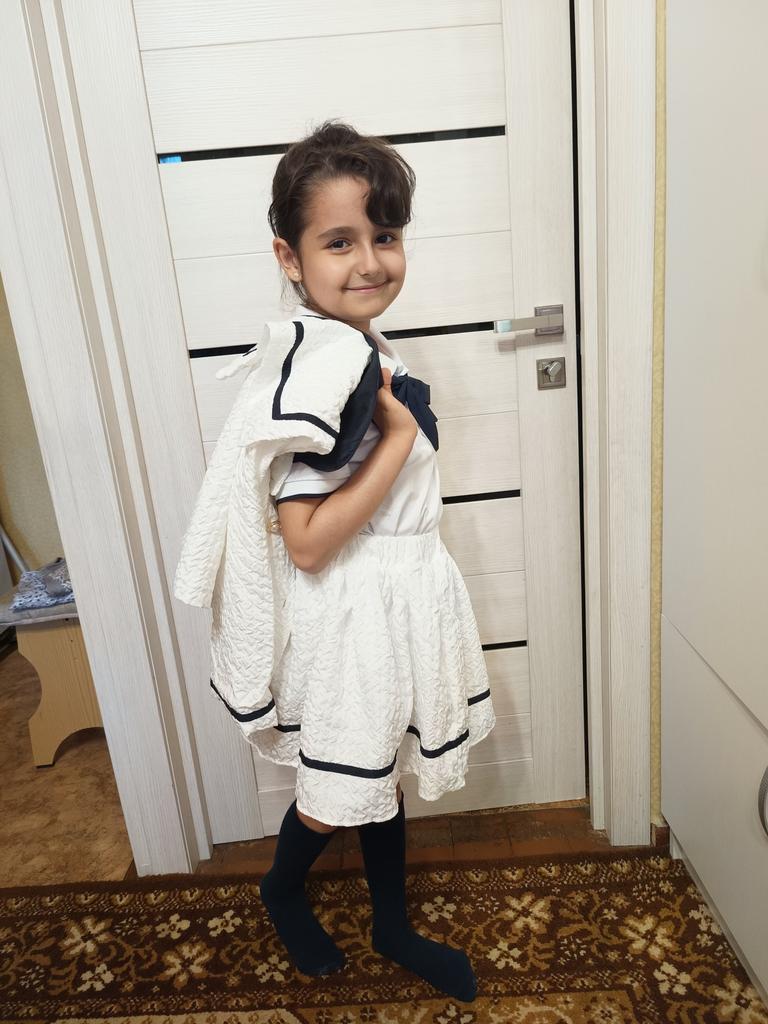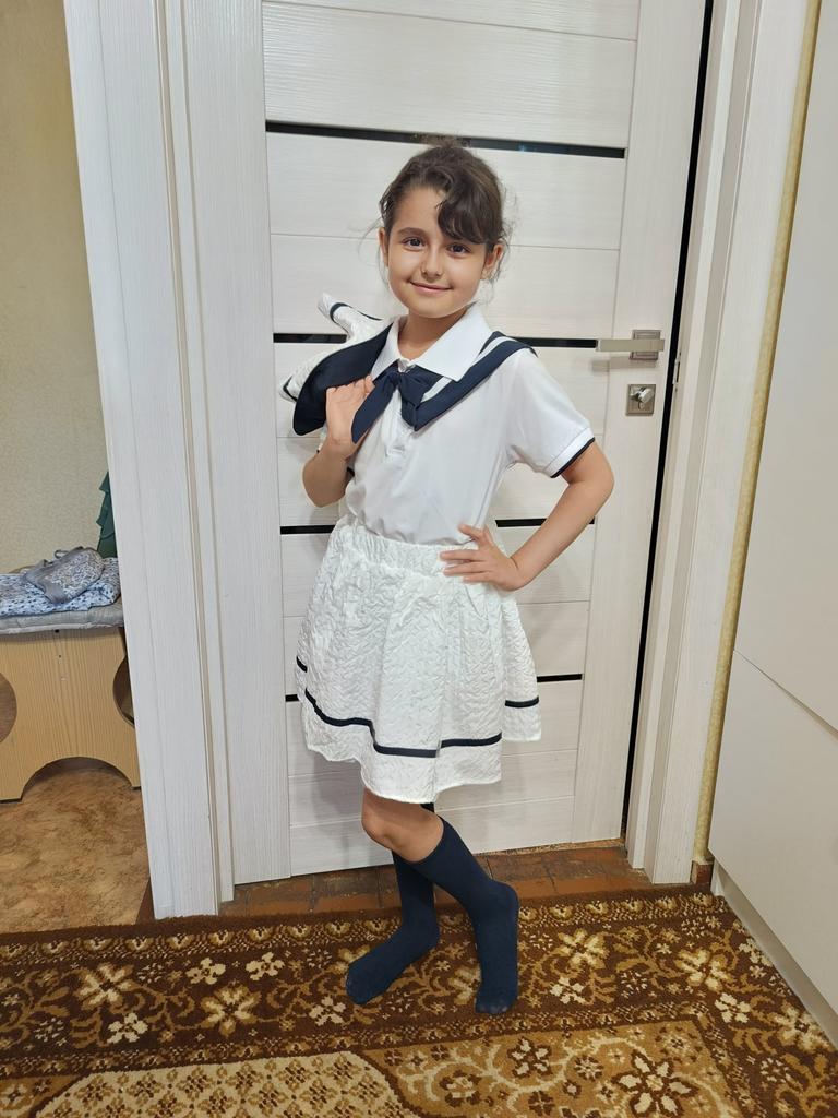tobě: 15/130, Délka: 39 cm, prsa: 38 cm, rukáv: 42 cm, přes rameno: 32 cm, pas: 24 cm, délka sukně: 32 cm, výška: 117-125cm, věk: 6-7.