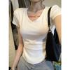Bílé tričko s výstřihem do V a krátkým rukávem Dámské Letní Nové Sladké a Pikantní Nepravidelné Krátké Slim Studentské Top