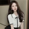 New Summer Letter Lapel Short-sleeved T-shirt Slim Short Double Zipper Navel Top Temperament Cardigan Trendy