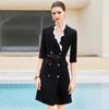 Elevate your professional wardrobe with this sophisticated women's blazer dress, crafted for the 2025 spring season. Its deep navy blue color exudes a high-end professional charm, while its goddess-like elegance ensures you stand out in any work environment. Made from luxurious viscose fiber, this piece combines comfort and style, offering a soft, flattering fit that complements your feminine silhouette. Perfect for making a powerful statement, it seamlessly blends timeless design with modern flair.