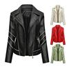 Dámská tenká kožená bunda se stojatým límečkem a zipem s prošíváním v jednobarevné barvě