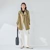 Qiuxin handsome stand-up collar, vertical and not easy to wrinkle fleece feeling, leather commuting casual medium and long trench coat 23066