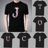 Módní tričko Černé Pánské 26 Anglických Písmen Zlatý Potisk Vzor Série Ležérní Kulatý Výstřih Dojíždění Pohodlný Top Tričko