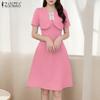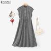 ZANZEA Women Round Neck Short Sleeve Striped Casual Shirts Dress