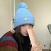 Winter sweet pet! Super white milk blue knitted wool hat couple style big head for face small warm cold hat