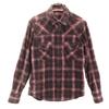 This is a western shirt from the 1990s. The size is unknown. Please refer to the actual measurements. There is a pen holder above the left chest pocket. There is some fluffing throughout, but no other noticeable damage.