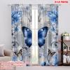 2pc,2D plane printing Light Filtering Curtains Blue Butterfly Bliss Durable Polyester (without rod) Holiday for Bedroom Office