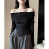 Elegant Off-the-shoulder Pullover Sweater Women Fashion Solid Color Simple Long Sleeve Tops Inner Casual Slim Fit Basic Long Sleeved Bottoming Shirt