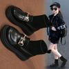 Girls' Black Retro Mary Jane Low-Cut Sock Boots - 2025 Autumn Fashion