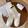Female Spring and Autumn Pure Color Sweet Velvet Bow Double Wood Ear Edge In The Tube Pile Socks