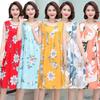 Women's Cotton Silk Mid-Length Nightgown - Summer Pajamas Plus Size Homewear for Middle-Aged and Elderly