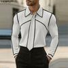 INCERUN Men Sets Lapel Neck Striped Belt Blazer Tops Trousers Long Pants Casual Suits