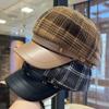Versatile Leather Brim Plaid Octagonal Hat for Women in Spring and Autumn Trendy Painter's Hat with Small Face and Elegant Temperament