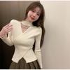Women's Off-Shoulder Halter Neck Long-Sleeve Knitted Sweater – Slim Fit Short Style for Autumn & Winter