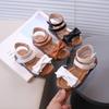Little Girl's Sandals Gladiator Style Black White Children Sliders Flat Pu Leather Fashion Hook-loop Kids Summer Shoes 21-30