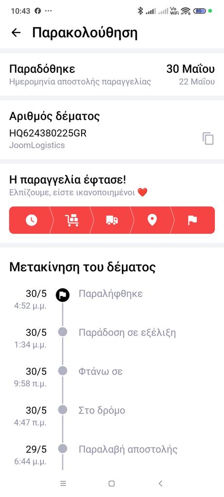 Εδώ δείχνει ότι το παρέλαβα. Όμως παρέλαβα 1 θήκη από τις δύο που πλήρωσα