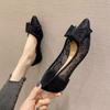 2024 Summer New Hollow Mesh Breathable Flat Shoes Pointed Bow Match Women's Single Shoes