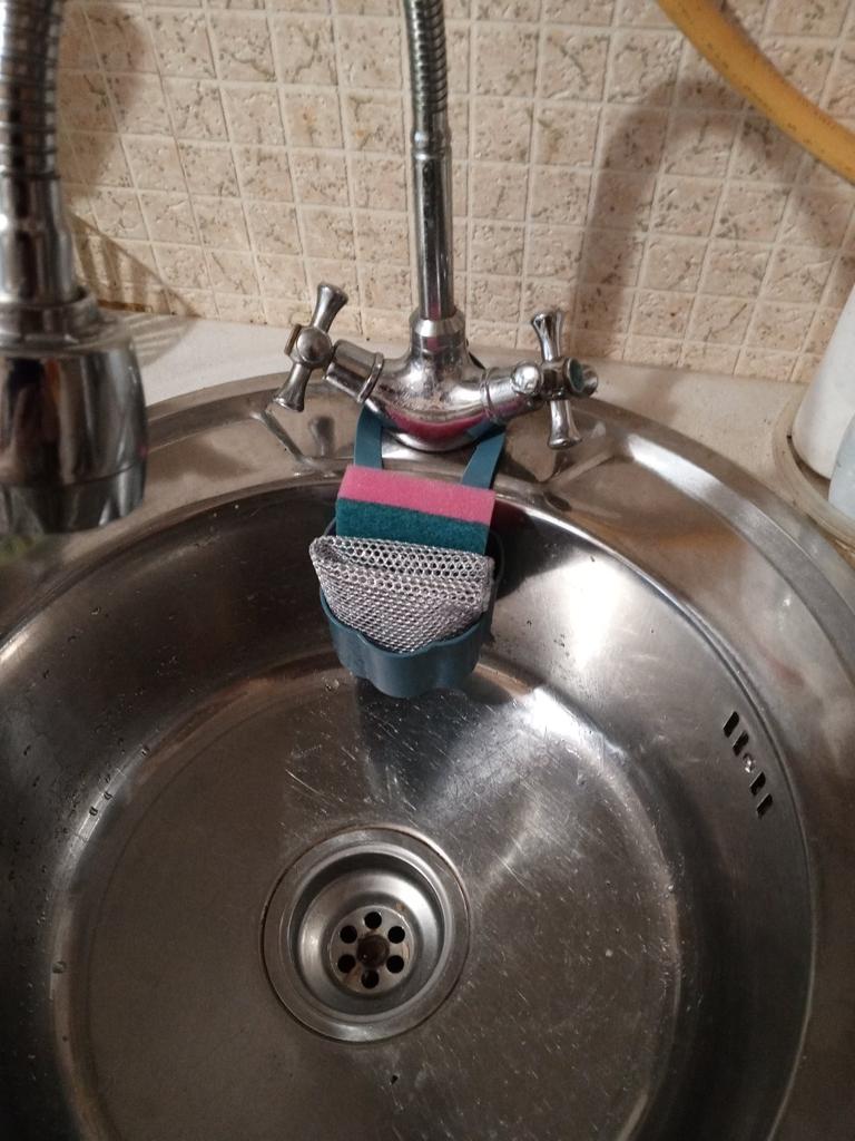 A very convenient basket for the sink. Now washing sponges and brushes are in a convenient place.