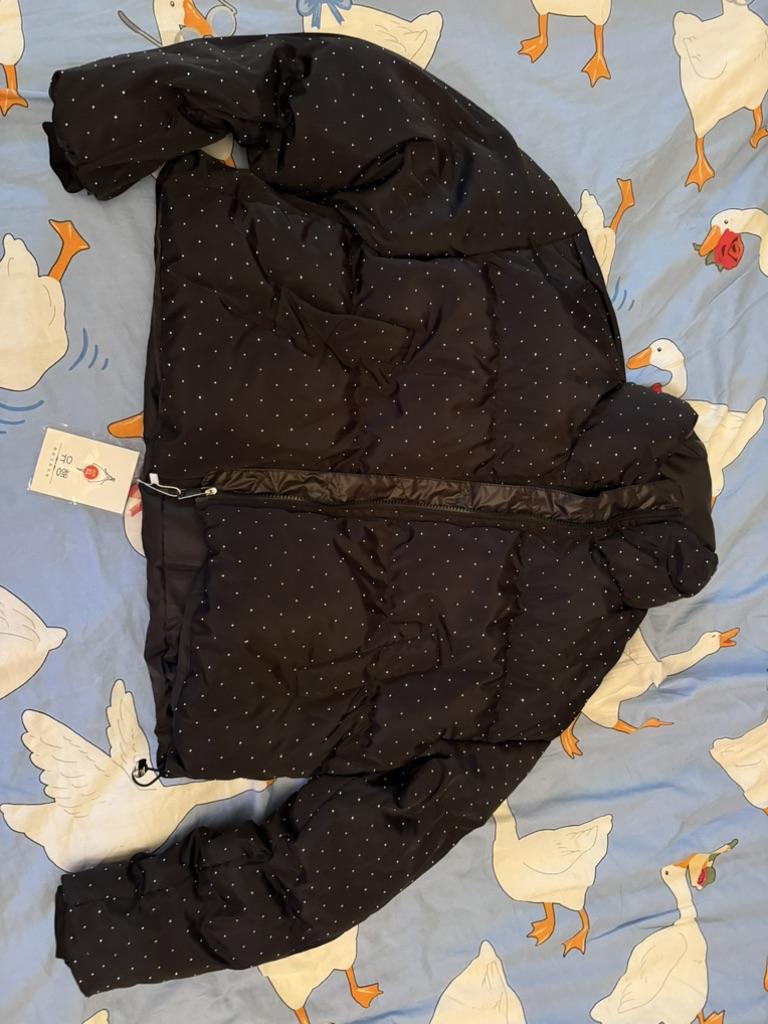Winter Print Coat with Starry Rhinestones and Stand Collar for Women