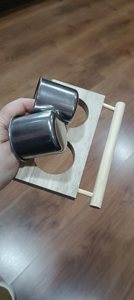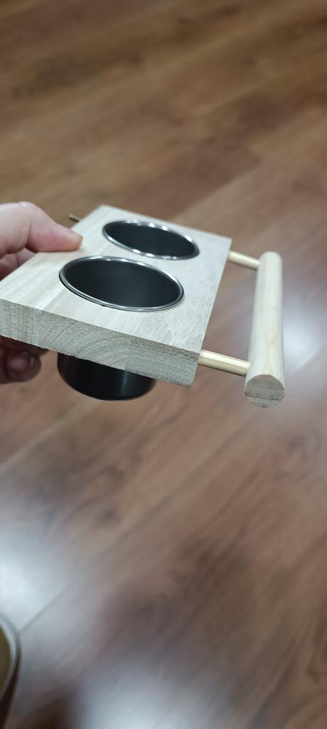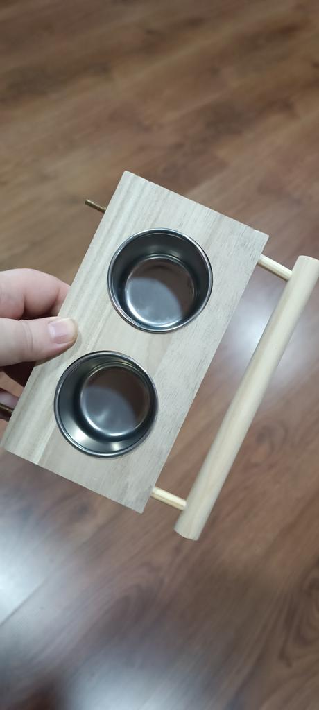 As stated, and note that these are deep feeders, more suitable for those birds that do not husk the grain (canaries, amadines);, and not for parrots in which the husk will immediately cover the aerch. You can also put porridge there, grated carrots. And keep in mind that the wood will not stay this clean for long )))