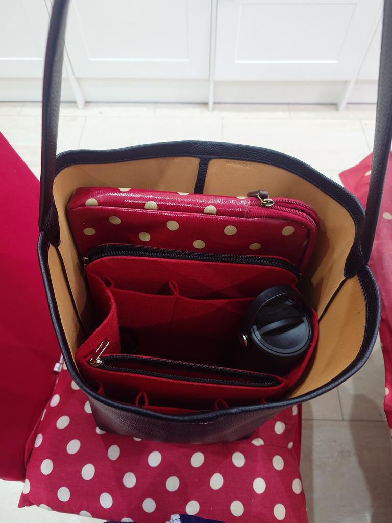 The bag is absolutely lovely. I've put a felt liner in it that I use for my small rucksack and it fits perfectly. I found that the liners/organisers for my other bucket bags were not tall enough. Very pleased with the bag. It's a perfect commuter/carryon travel bag.