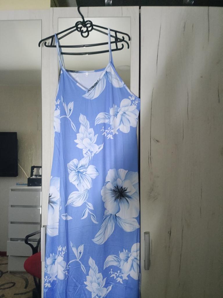 Women's Summer Long Dress V-Neck Sleeveless Sling Dress Loose Floral Printed Maxi Dress