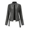 Women's Slim Leather Stand-Up Collar Zipper Stitching Solid Color Jacket