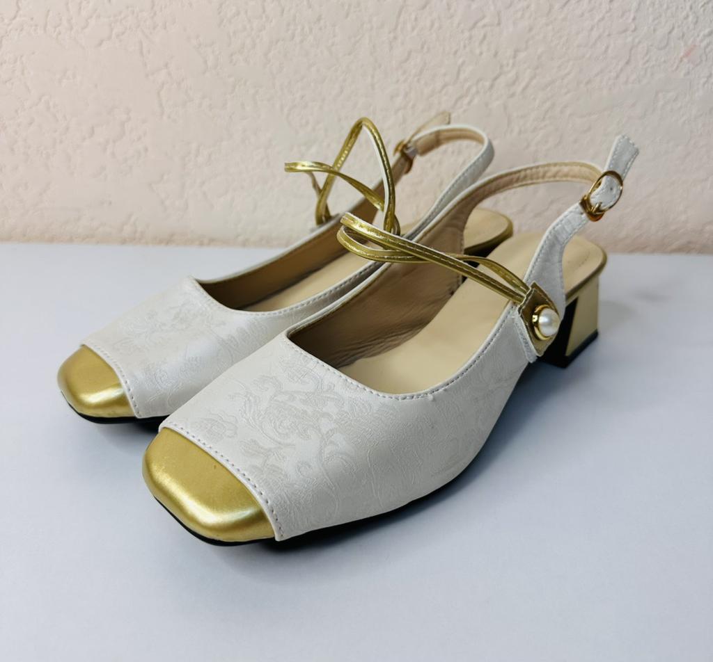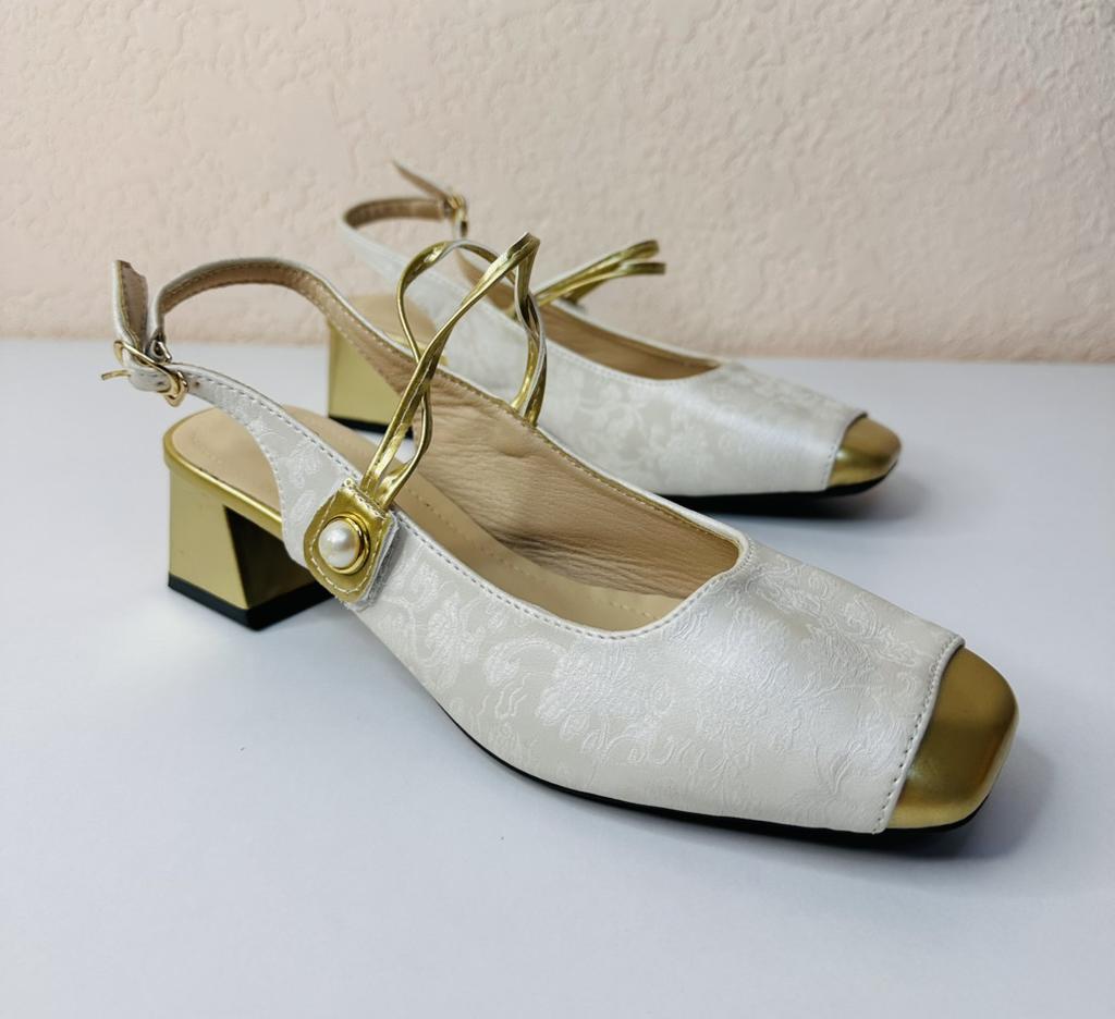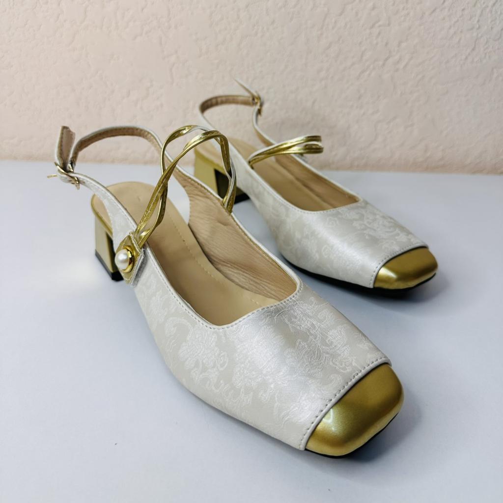 Elegant Chinese Style Women's Mid Heel Slip-On Shoes Summer Soft Fairy Outerwear Mary Jane Flat Sandals Silk Upper Rubber Sole