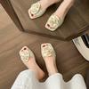 Square Head One-word Drag New Summer New Flower Temperament Sandals with Skirt High-heeled Slippers