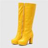 Women Knee High Boots Chunky Heels Candy Color Black Green Yellow Patent Leather Sexy Party Club Lady Zipper Long Platform Boots
