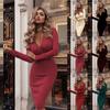 Autumn Women's Dress V-neck Sexy Bodycon Long-sleeve Mid-length Dress for Party